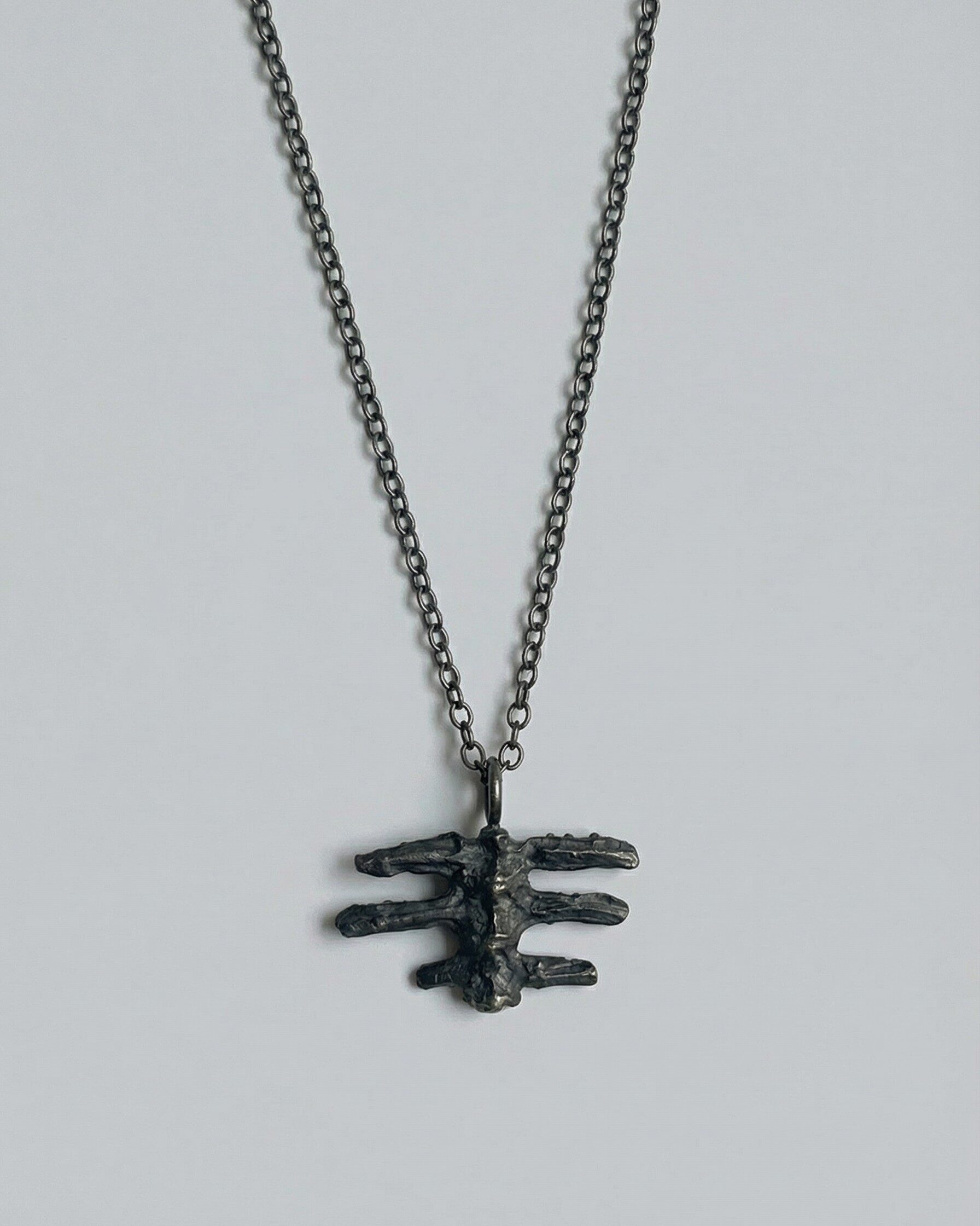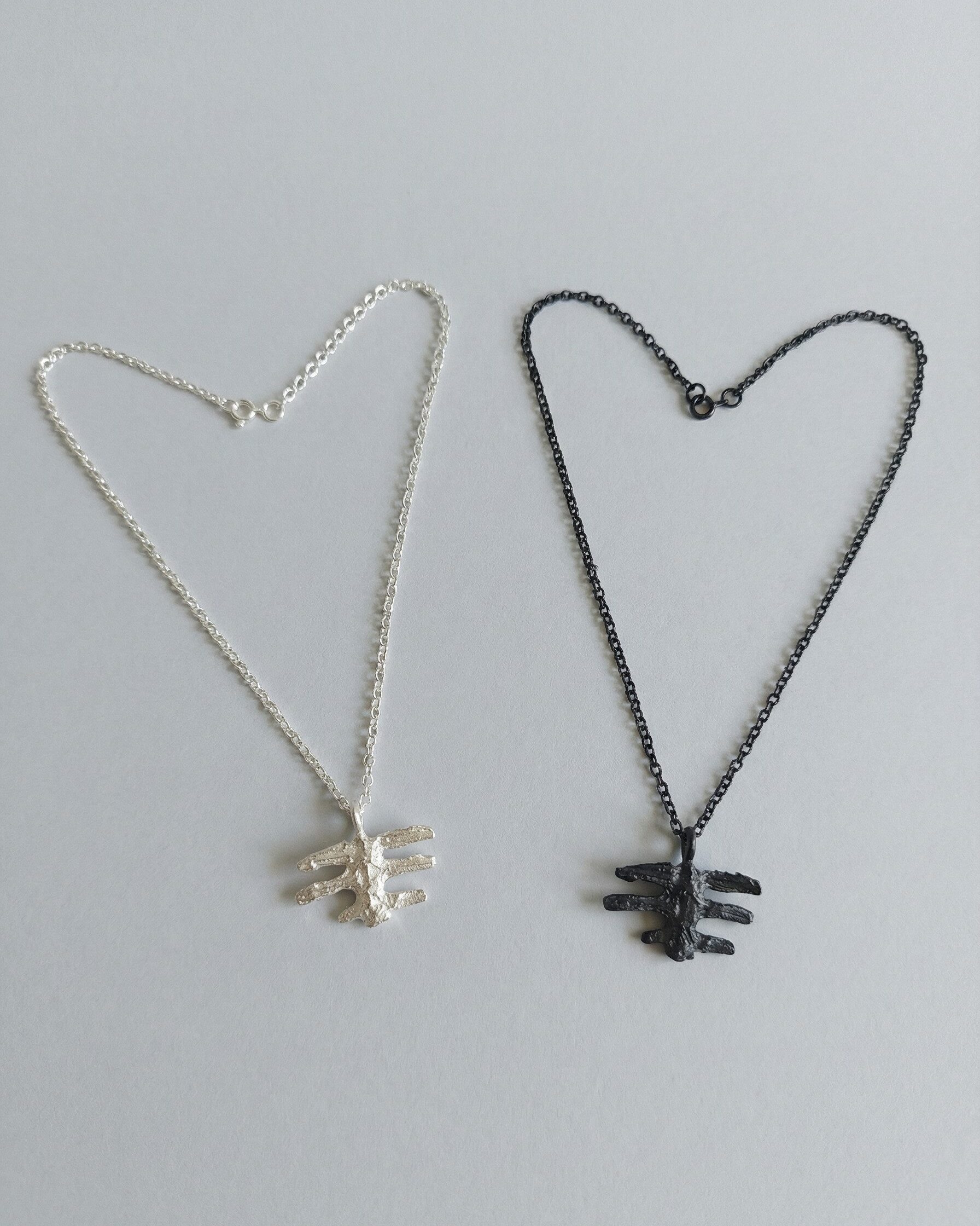 Anima Spine Necklace is a silver necklace created by jeweler Jorilė Švedaitė, shaped by the aesthetic of the PELENUS brand. The organic, spine-inspired pendant embodies anima — inner strength and vitality. A minimalist piece with an understated elegance for everyday wear.