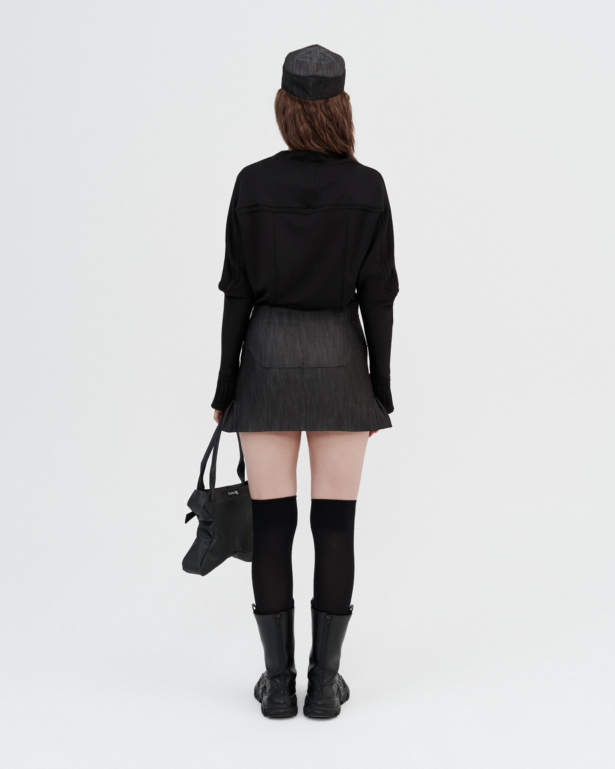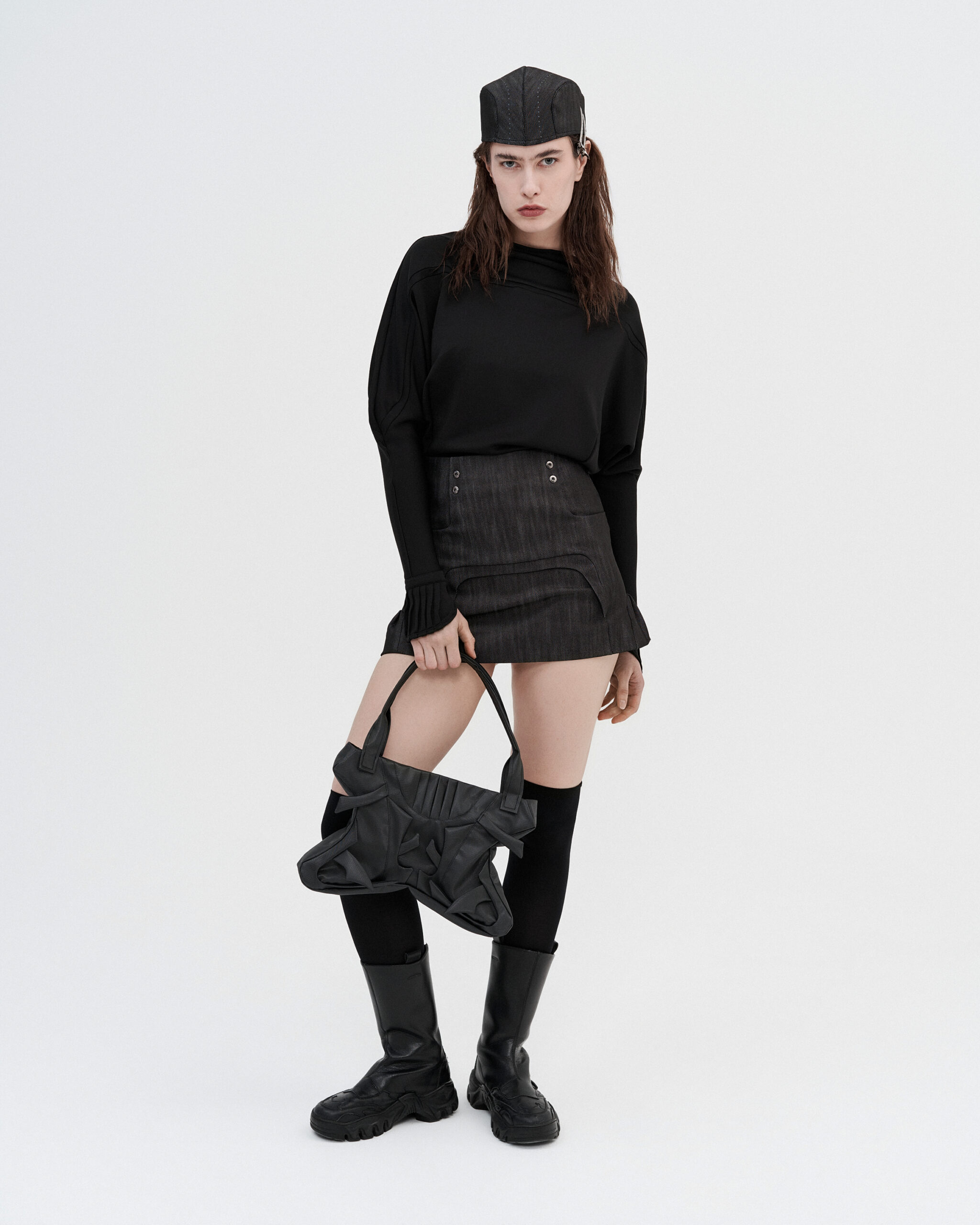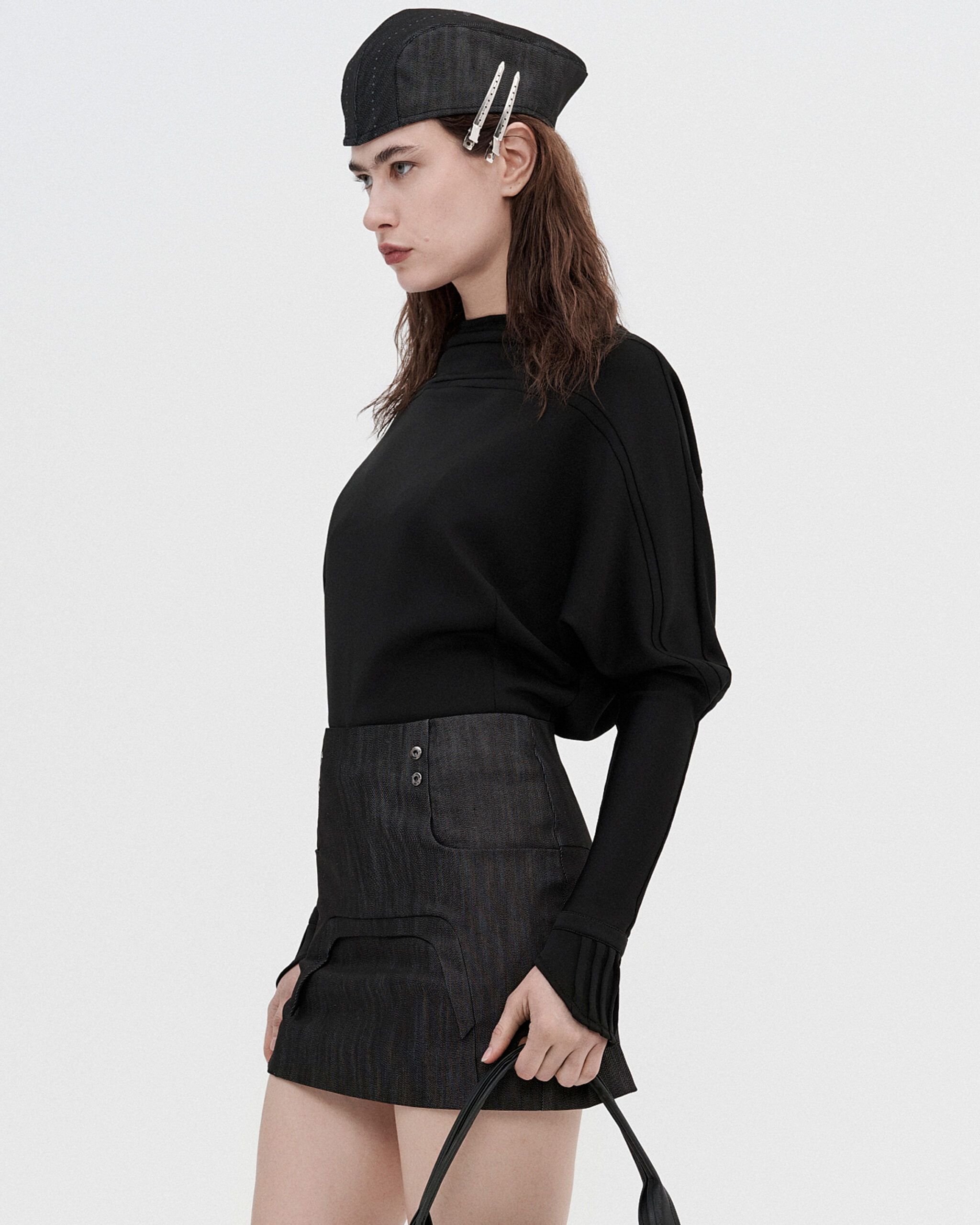 Minimal long sleeve top designed with a clean, modern silhouette. Made from a smooth stretch fabric, it fits close to the body while allowing comfortable movement. The design features a slightly raised neckline and extended sleeves.